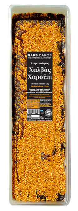 Συστατικά: Ταχίνι ολικής (σουσάμι), χαρουπόσκονη, φυστίκι Σερρών, χαρουπόμελο, λάδι καρύδας, κουβερτούρα